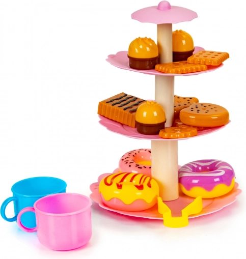 Sada obsahuje elegantní třívrstvý stojan na dezerty, na který mohou děti umístit veškeré sladkosti. Je to perfektní doplněk pro organizaci fiktivních oslav a čajových dýchánků.