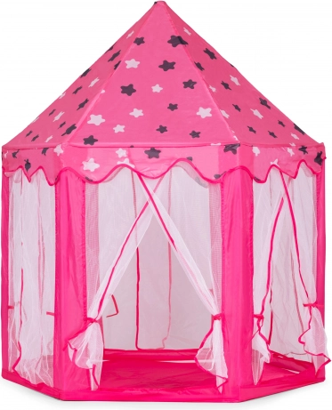 Proměňte dětský pokoj v pohádkové království. Tento stan v podobě princeznovského zámku nabízí útulný koutek pro hraní, čtení i relax. Díky lehkému skládacímu rámu a textilní podložce ho snadno postavíte doma i venku. Transparentní síťované panely zajišťují proudění vzduchu a přehled o dění uvnitř.