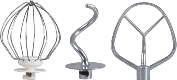 V sadě je háček na hnětení, K-metla na míchání a šlehací metla. Všechny příslušenství lze mýt v myčce pro snadnou údržbu.