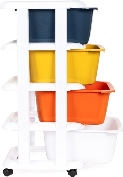 Tento pojízdný regál je funkčním a praktičtějším řešením pro ukládání různých věcí. Usnadňuje organizaci a je vhodný pro různé místnosti v domácnosti.