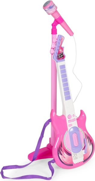 Elektrická kytara a mikrofon se stojanem pomáhají stimulovat zájem o hudbu, kreativitu a zlepšovat koordinaci dětí.