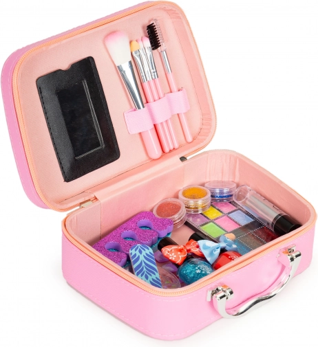 Objevte magický svět krásy pro děti v přenosném kufříku s pevným uchem a zrcátkem. Všechny komponenty jsou navrženy tak, aby byly šetrné k dětské pokožce a zároveň se daly snadno omýt vodou nebo setřít vlhčeným ubrouskem. Díky chytrým přihrádkám zůstane vše na svém místě i při cestování.