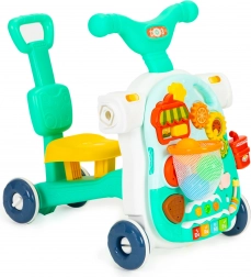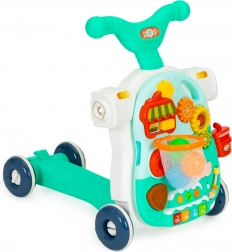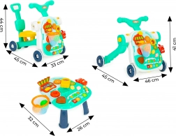 Tato odolná a bezpečná hračka roste spolu s dítětem. Díky chytrému řešení 4v1 snadno přepnete mezi chodítkem, odrážedlem, koloběžkou a stolkem s aktivitami. Široce rozkročená kola a nastavitelná rukojeť dodají oporu při prvních krůčcích, zatímco gumové běhouny kol chrání podlahu a zabraňují podkluzování.