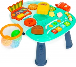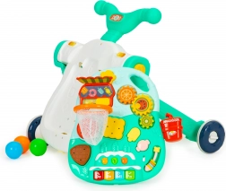 Piáno, ozubená kolečka, tvarovací vkládačka a koš na míčky rozvíjejí smysly, logiku i jemnou motoriku. Jednoduché uchycení nožiček pro rychlou proměnu na stolek.
