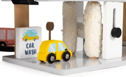 Garáž je vyrobena z odolného dřeva a má hladké, bezpečné hrany. Bohaté příslušenství včetně automyčky a čerpací stanice rozšiřuje dětskou představivost a prodlužuje dobu hraní. Ideální dárek pro děti od 3 let, který podporuje rozvoj motoriky, koordinace i logického myšlení.