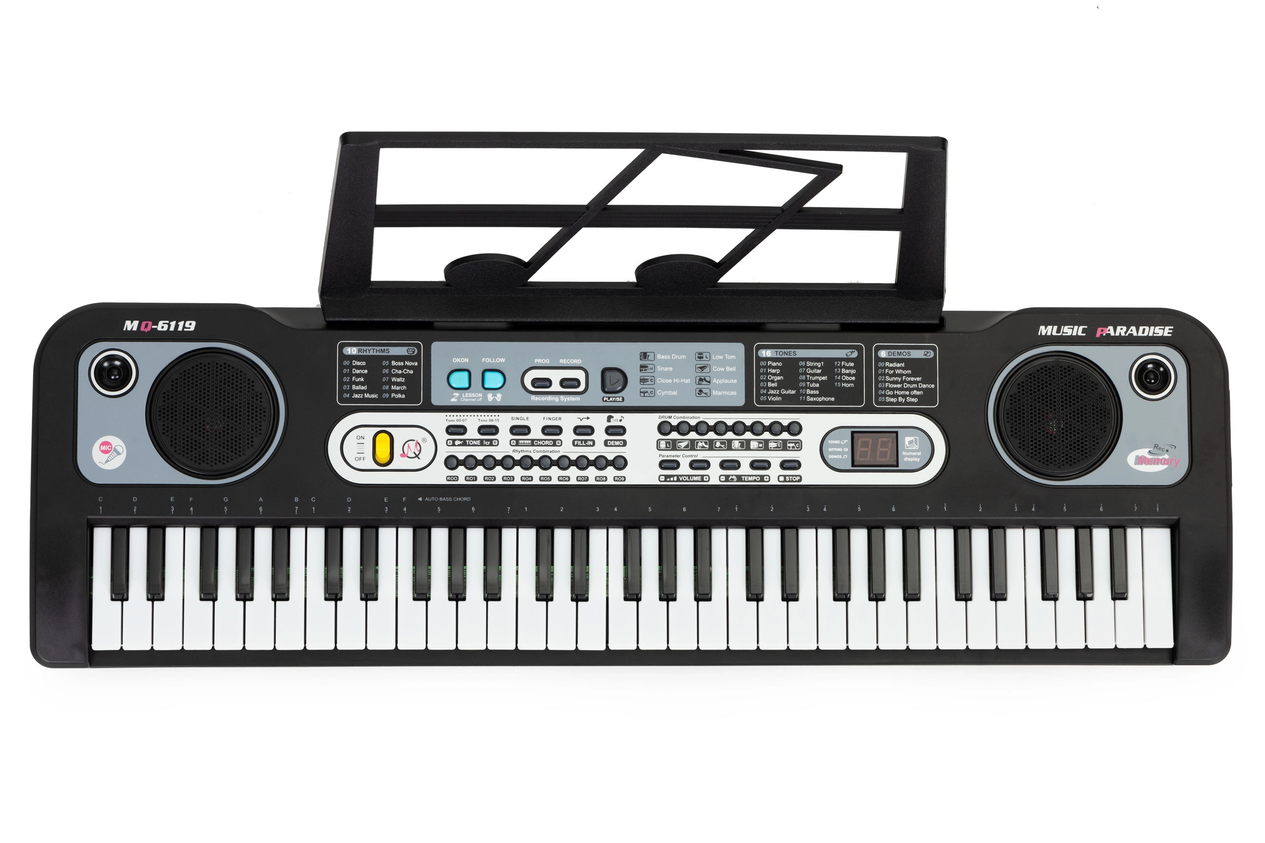 Objevte zábavné elektronické klávesy pro děti s 61 klávesami, mikrofonem a bohatou výbavou pro učení i hraní. Nabízejí 2 výukové režimy, nahrávání a přehrávání, 10 rytmů, 6–16 tónů a zvukové efekty. Díky možnosti napájení adaptérem nebo bateriemi jsou klávesy lehké, přenosné a ideální pro rozvoj kreativity a hudebních dovedností dětí od 3 let.