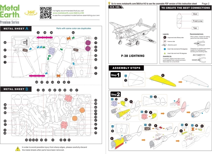 METAL EARTH ICONX přináší větší a propracovanější modely z nerezových plátků s precizním laserovým gravírováním. Lockheed Martin P‑38 Lightning patří k ikonám 2. světové války – a teď může ozdobit i vaši poličku jako efektní kovová replika s autentickými liniemi dvoutrupého stroje a kokpitem uprostřed.