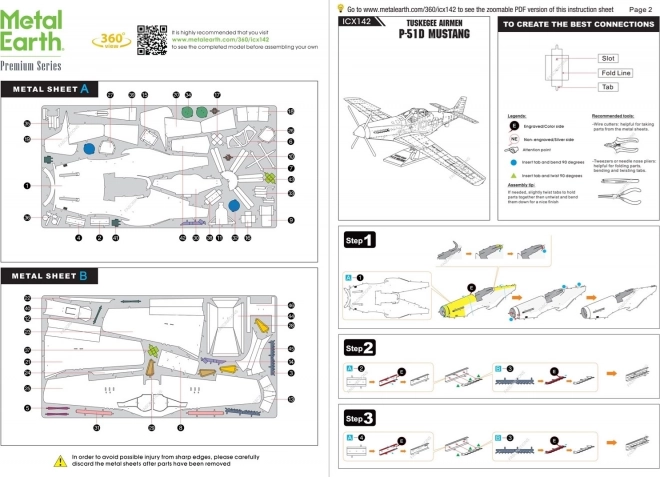 Balení obsahuje dvě ocelové plátky, pinzetu a návod k sestavení. Dokončený model má rozměry cca 15,7 x 19,3 x 7,9 cm. Doporučeno pro věk od 14 let.