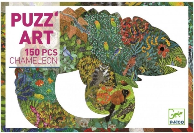 Puzzle Djeco Chameleon zaujmou netypickým tvarem zvířete a bohatě ilustrovaným, barevným motivem plným detailů. Díky větším a pevným dílkům se snadno skládají a jsou ideální pro děti od 6 let. Hotový obrázek o rozměrech 62 × 48 cm promění každý dětský pokoj v kreativní a hravou galerii.
