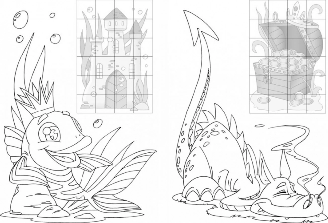 Rybičky s korunkou, draci, žabí princ i lesní zvířátka – rozmanité scény udržují pozornost a motivují k dokončení úkolů.