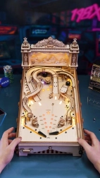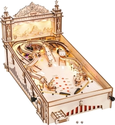 Vydejte se na dobrodružství s dřevěnou skládačkou pinballového automatu. Tento model vás přenese do atmosféry 90. let s retro cirkusovým designem. Nabízí hodinovou zábavu pro všechny kreativní tvůrce starší 14 let.