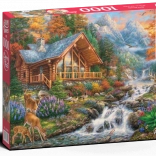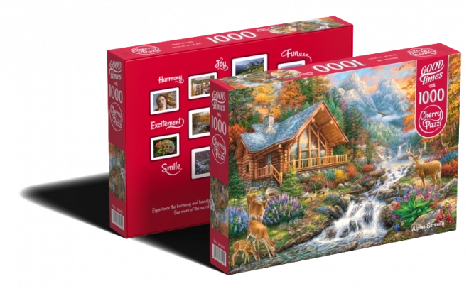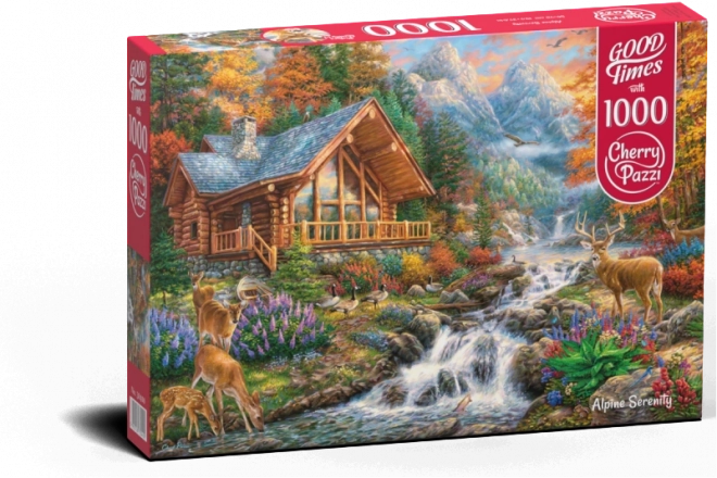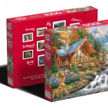 Tato skládačka nabízí poklidný únik do světa alpské krásy. Zobrazují scenérii s horskou chatou u řeky, podzimními stromy a slunečními paprsky, které vás okouzlí svojí nostalgickou atmosférou.