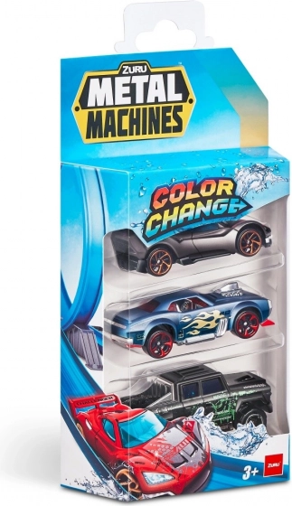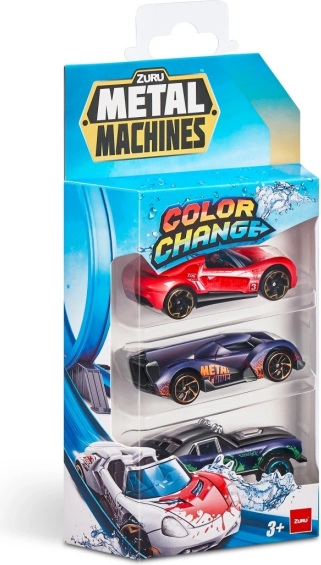 Sada ZURU Metal Machines Color Change přináší do světa závodních autíček nový rozměr – magickou změnu barvy ve vodě. Stačí teplá nebo studená voda a během vteřiny sledujete, jak se karoserie promění. Děti tak zažijí nekonečné experimentování, příběhy i závodní výzvy.
