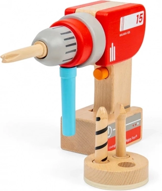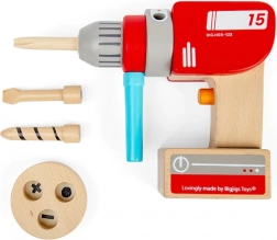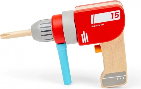 Tato dřevěná vrtačka věrně napodobuje skutečné nářadí, ale bez elektřiny a ostrých částí. Děti mohou ručně otáčet hlavou vrtačky, přepínat imaginární režimy pomocí klikacího tlačítka a snadno nasazovat magnetické vrtáky a šrouby. Ideální pro hry na stavění poliček či nábytku a rozvoj praktických dovedností.