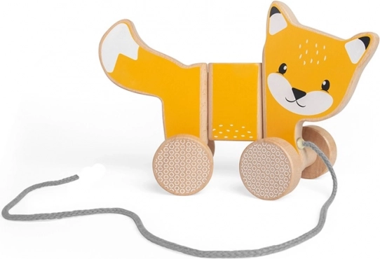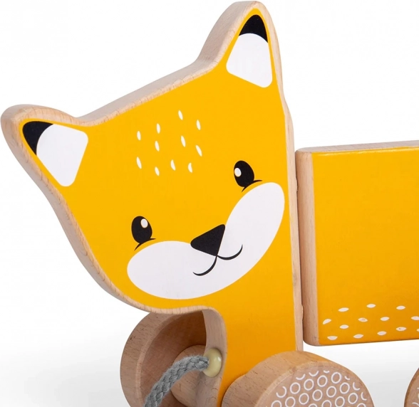 Roztomilá tahací liška z FSC dřeva podporuje obratnost, hrubou motoriku a koordinaci dětí od 1 roku. Má hladce jedoucí kola s geometrickým designem, pohyblivé klouby pro snadné zatáčení a měkký bezpečný provázek příjemný do dětské ruky. Vhodná pro domácí i venkovní hraní na rovných površích.