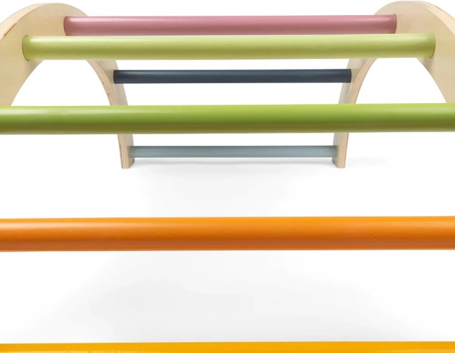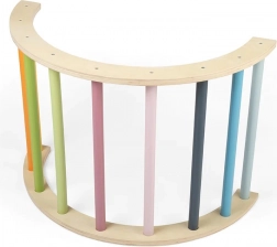 Montessori oblouk BIGJIGS TOYS je univerzální herní prvek, který děti motivuje k přirozenému pohybu a objevování. Lze jej používat jako prolézačku, balanční pomůcku, základ pro skrýš s dekou nebo jako závěsný stojan pro chrastítka a plyšáky. Pastelové příčky lákají k aktivitě a zároveň esteticky dotvářejí interiér dětského pokoje.