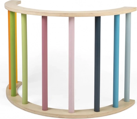 Díky pevnému zpracování z FSC® certifikovaného dřeva nabízí oblouk bezpečné zázemí pro rozvoj hrubé motoriky, rovnováhy a základní síly. Kompaktní rozměry šetří místo a z oblouku dělají praktický doplněk do herního koutku i pro domácí pohybovou terapii. Určeno pro vnitřní použití, s montáží dospělé osoby.