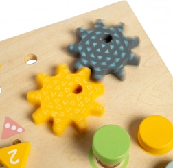 Dvě dřevěná ozubená kola podporují objevování mechanismů, logického myšlení a zvídavosti při hře.