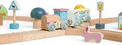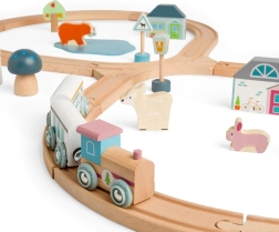 Produkt je eticky vyroben z udržitelného dřeva s certifikací FSC®, což zaručuje, že materiál pochází z lesů obhospodařovaných šetrným způsobem. Hračka je plně kompatibilní s vláčkodráhami jiných výrobců, což umožňuje rozšíření a zlepšení herního zážitku.