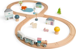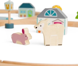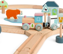 Tato dřevěná vláčkodráha u lesa nabízí mladým objevitelům nekonečné možnosti pro kreativní hru. Dráha ve tvaru osmičky vede kolem půvabných muchomůrek, borovic a lesních zvířátek, stejně jako kolem kavárny či pekárny. Kvalitní zpracování a robustní design zaručují, že hračka dlouhou dobu vydrží a dětem přinese mnoho radosti.