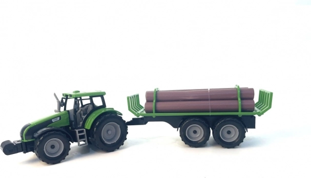 Traktor s přívěsem na klády je perfektní hračka pro děti, které milují zemědělskou techniku a stavební činnosti. Tento model vyniká realistickým designem a je k dispozici ve třech různých barvách. Přívěs plný klád přidává při hraní na autentičnosti a zvyšuje možnosti pro kreativní scénáře.