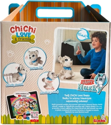 Roztomilý husky CHI CHI LOVE Happy Husky je interaktivní plyšový pejsek, který reaguje na 12 hlasových povelů v češtině, vydává až 60 zvuků a melodií a rozvíjí u dětí komunikaci a zodpovědnost. Měkké plyšové provedení, modrý šátek a praktické balení s rukojetí z něj dělají skvělého parťáka na hraní i mazlení.