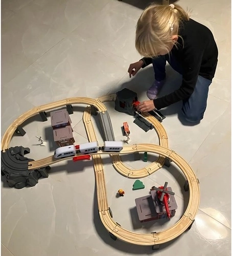 Kompletní set se vším, co děti potřebují: dlouhá trať, mosty, budovy, figurky, dopravní značky, vrtulník i nákladní vůz. Neustálé objevování a nové příběhy při každém hraní.
