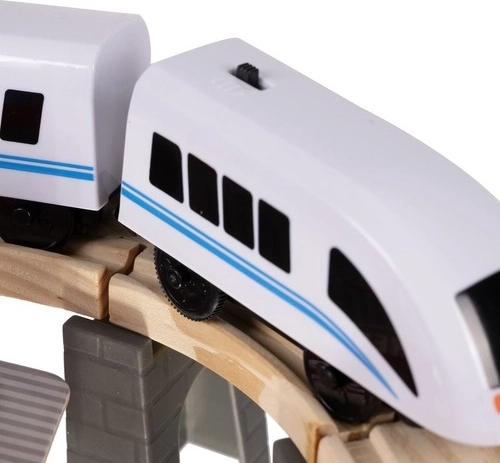 Osobní vlak poháněný 1× AA (není součástí) se snadno spojí pomocí pevných magnetů, které drží soupravu i při zvednutí. Plynulá jízda po přímých úsecích, mostech i křižovatkách.