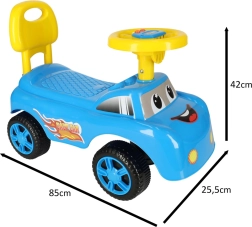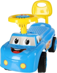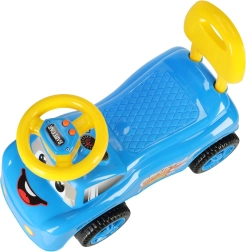 Roztomilé modré odrážedlo s úsměvem na čele podporuje motoriku, rovnováhu a jistotu při prvních jízdách. Díky nízké hmotnosti se snadno přenáší a dítě jej bez námahy ovládá. Klakson na volantu dodá jízdě realistické auto-zážitky.