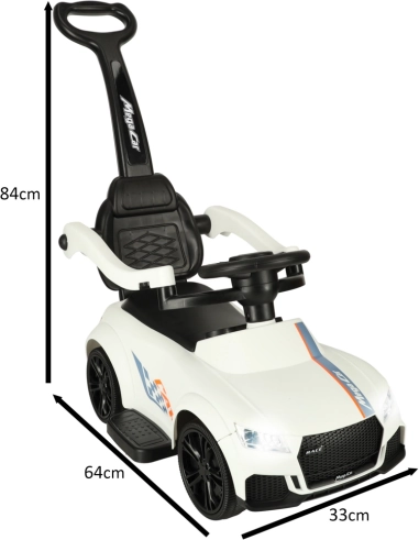 Rozjeďte zábavu doma i venku! Toto univerzální jezdítko 3v1 kombinuje push car, odrážedlo a samostatné vozítko. Světla a zvuky promění každou jízdu v dobrodružství, zatímco pevná konstrukce a ochranné prvky zajistí klidné a bezpečné hraní.