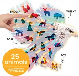 Objevte kouzlo skládání s dřevěným puzzle Bystrý orel od WOODEN CITY. Tento produkt vás zaujme svými speciálně tvarovanými dílky, které tvoří nezapomenutelnou mozaiku zvířecích tvarů. Laserem zvýrazněné detaily a samostatně stojící figurky přinášejí nové výzvy a radost ze skládání.