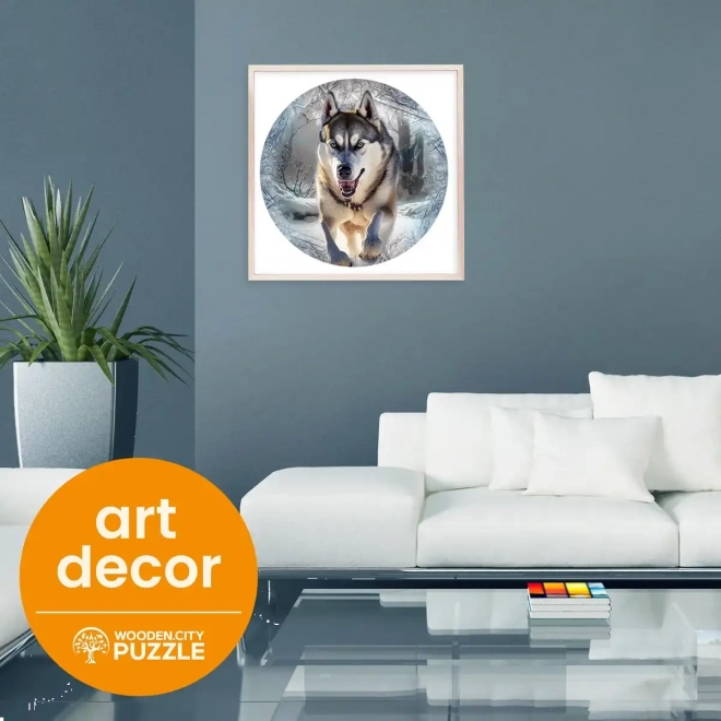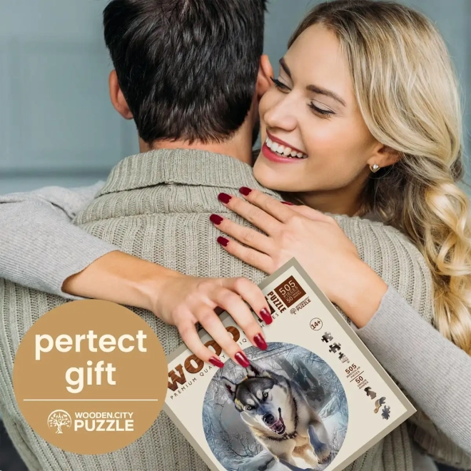 Jedinečné dřevěné puzzle značky Wooden City s motivem Běžícího Vlka přináší zábavné skládání s unikátně tvarovanými dílky, které mohou samostatně stát jako figurky.