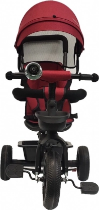 Tříkolka je vybavena ruční brzdou a stojánkem pro snadné parkování. Moderní design v kombinaci černé a červené barvy je atraktivní pro děti i rodiče, zatímco retro styl s 10palcovými koly zajišťuje plynulou a pohodlnou jízdu.