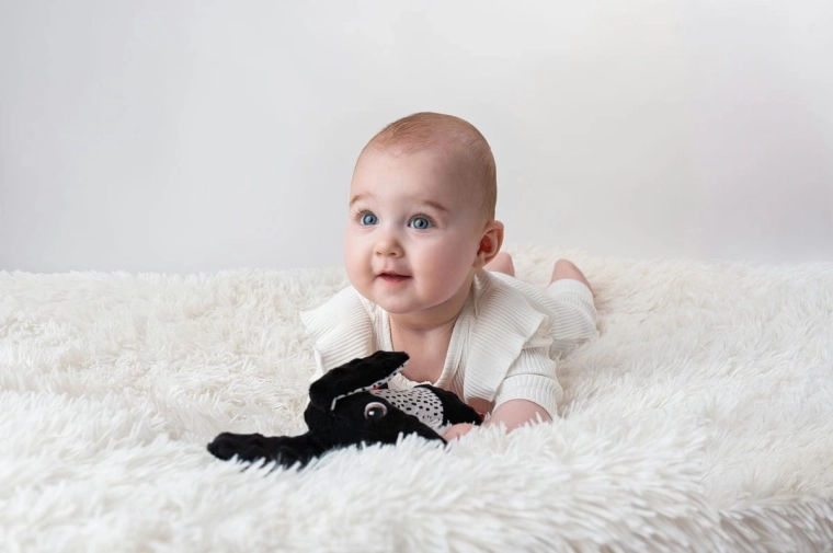 Černobílé vzory na hřbetě a uších podporují soustředění a zrakové vnímání novorozenců.