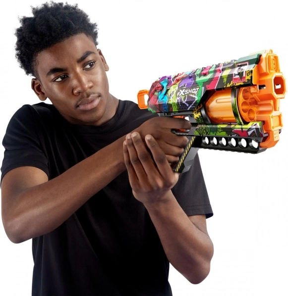 Objev sběratelskou edici X-SHOT Skins s výrazným graffiti designem Griefer. Blaster je navržen pro přesnost, odolnost a dlouhý dostřel, takže snadno zasáhneš cíl i na větší vzdálenost. Ergonomická rukojeť padne do ruky a nabíjení je rychlé a intuitivní.