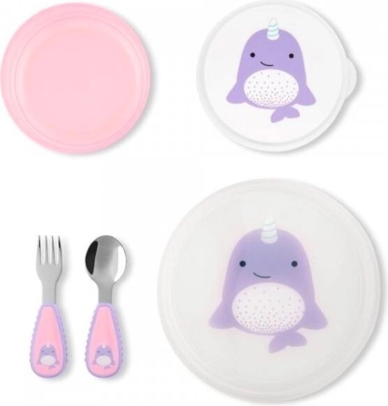 Naše sada jídelního nádobí ZOO Narval je ideální pro povzbuzení dětí k samostatnému stolování. Sada zahrnuje: