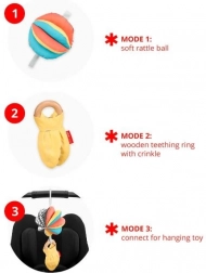 Hračka DISCOVEROSITY 3 v 1 pro kočárek byla navržena ve spolupráci s odborníky na Montessori vzdělávání. Podporuje vizuální stimulaci, rozvíjí motorické schopnosti a je ideální pro použití doma i na cestách.