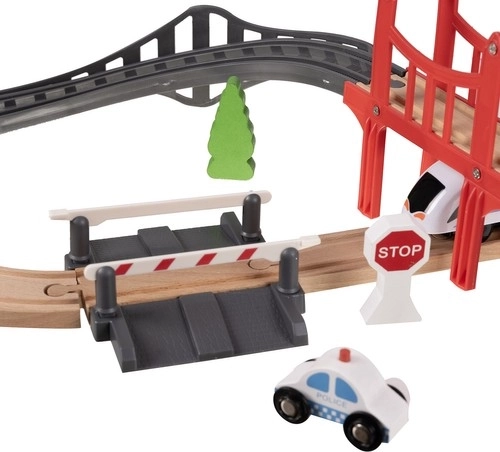 Tato dřevěná vláčková dráha je ideálním řešením pro podporu tvořivosti a fantazie u dětí. Je navržena tak, aby se děti mohly ponořit do světa železniční zábavy, a to v pohodlí domova nebo venku. Sada obsahuje celkem 37 precizně zpracovaných prvků, včetně mostu a budov, které dodávají realistické prvky k zábavě.