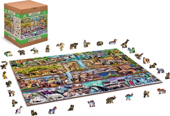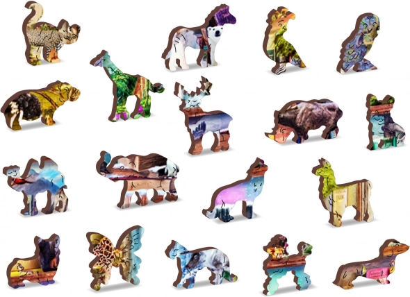 Vstupte do světa barev a fantazie s dřevěným puzzle Úžasné království zvířat. Unikátně tvarované dílky ve tvaru zvířat a dalších motivů přidávají skládání nový rozměr – některé z nich dokonce samostatně stojí jako drobné figurky. Díky vyšší obtížnosti je puzzle skvělou výzvou pro dospělé i starší děti, které hledají smysluplnou zábavu rozvíjející logiku, soustředění a kreativitu.