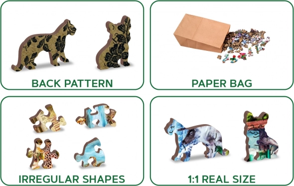 Objevte radost ze skládání s dřevěným puzzle se speciálně tvarovanými dílky, které zobrazují zvířata, stavby a předměty. Díky oboustrannému provedení 2v1 můžete skládat podle obrázku nebo pouze podle tvarů. Precizní laserové zpracování zajišťuje hladké hrany bez třísek a kvalitní HDF materiál poskytuje pevnost a dlouhou životnost. EKO balení bez plastů potěší každého, kdo myslí na přírodu.