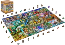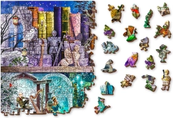 Dopřejte si výzvu s prémiovým dřevěným puzzle, které propojuje umění, kvalitu a ekologii. Díky preciznímu laserovému zpracování mají dílky hladké hrany bez třísek a jejich nápadité siluety – zvířata, stavby či předměty – potěší každého milovníka skládání. Oboustranné provedení umožní skládat buď podle detailního obrázku s fantazijní scenérií hradů a draků, nebo podle opakujícího se vzoru na rubu pouze dle tvarů.