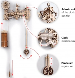 Díky chytré konstrukci model složíte bez lepidla, díly do sebe přesně zapadají a celý proces doprovází obrázkový návod. Projekt rozvíjí dovednosti v rámci STEM a umožní vám zblízka poznat principy převodů, ozubených kol a mechaniky kyvadlových hodin.