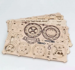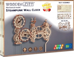 Objevte spojení vědy a umění v dřevěném 3D modelu nástěnných hodin STEAMPUNK WOODEN CITY. Sestavíte 269 precizně vyřezaných dílů z březové překližky do plně funkčního mechanického stroje s kyvadlem a nastavením chodu. Po natažení hodiny spolehlivě běží až 12 hodin a okouzlí každého milovníka designu i techniky.