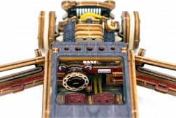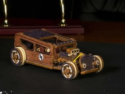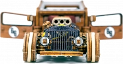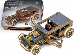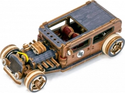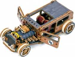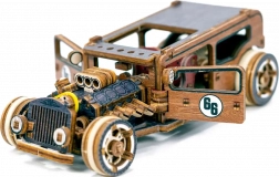 Tento mechanický model WOODEN CITY hot rod v měřítku 1:32 přináší autentický zážitek ze stavby i z mechaniky. Uvnitř najdete detailní motor, dvojité sedadlo i řadicí páku, při jízdě oceníte setrvačníkový pohon a vratná kola. Díky preciznímu výřezu dílů z březové překližky do sebe vše přesně zapadne – bez kapky lepidla.