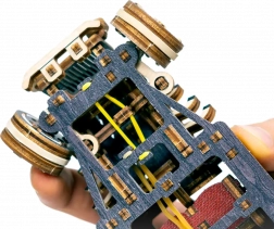 Setrvačníkový mechanismus, otočná přední kola a vratná kola přinášejí realistický jízdní projev. Poznejte principy převodů a gumových pohonů zblízka.
