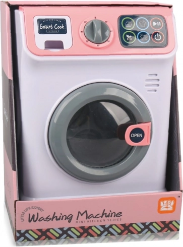 Růžová pračka se zvukovými a světelnými efekty je ideální pro děti, které rády napodobují dospělé při domácích pracích. Baterie jsou přiloženy.