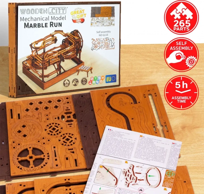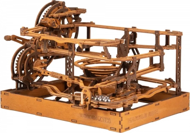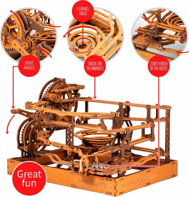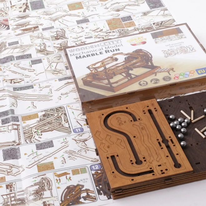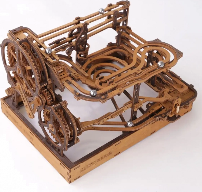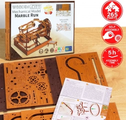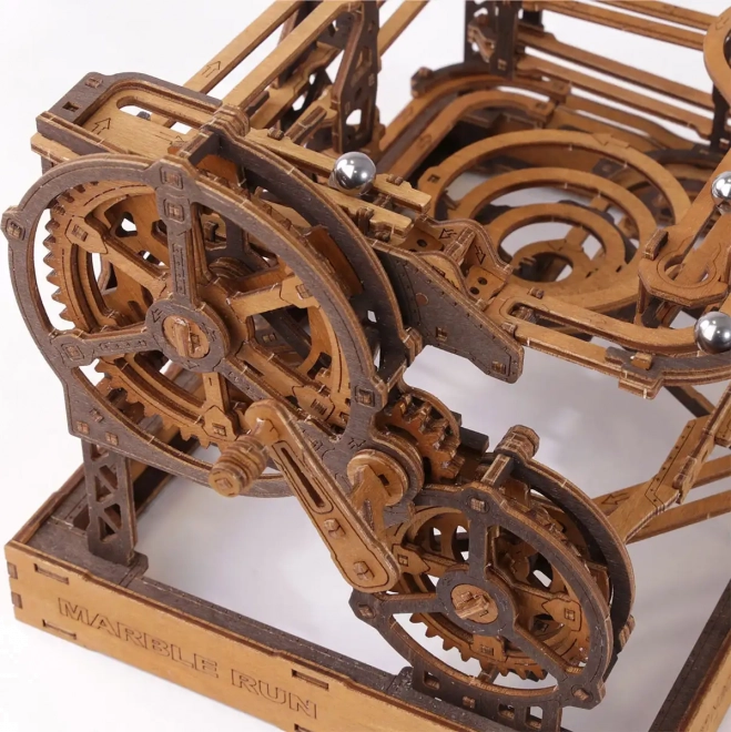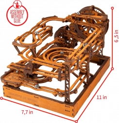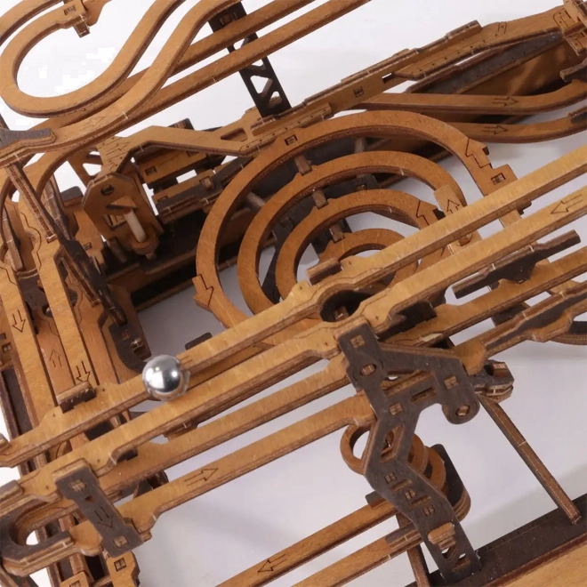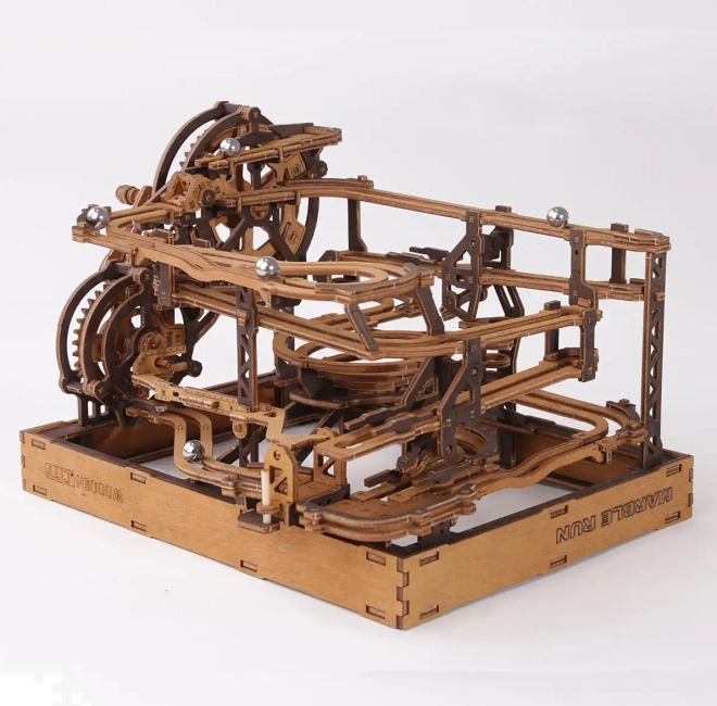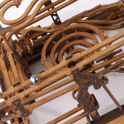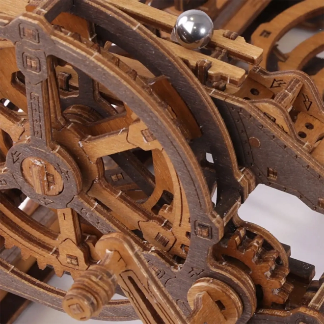 Toto 3D dřevěné puzzle nejen zdobí interiér, ale také nabízí hodinovou zábavu a výzvu. Vyrobeno z ekologické březové překližky s vysokou hustotou, tento model vyžaduje přemýšlení a dovednost při stavbě. Design simuluje funkční mechanismus, kde kovové kuličky procházejí po propracovaných drahách.