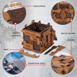 Dřevěné 3D puzzle od značky WOODEN CITY vás zve na dobrodružnou výpravu do historie a logiky. Vytvořte si puzzle box bez potřeby lepidla či nářadí a užijte si zábavné chvíle při skládání. Tyto mechanické modely nabízejí pohled na fungování gumičkových motorů, ozubených koleček a dalších komponentů.