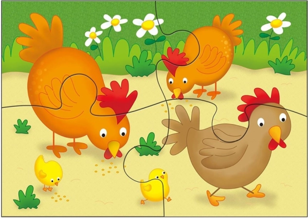 - Tématika farmy – roztomilé ilustrace domácích zvířat děti motivují ke skládání