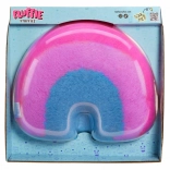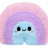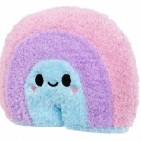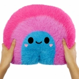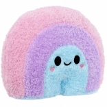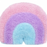 Plyšový hračka ve tvaru duhy o růžové, fialové a modré barvě s přátelským úsměvem. Ideální pro dekoraci nebo jako mazlíček pro děti.